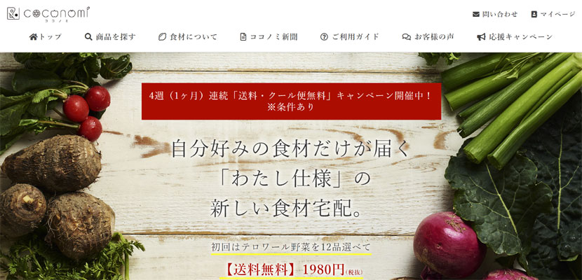 「テロワール野菜」という耳慣れない言葉が随所に出現するが、要はハウス栽培ではなく露地栽培で作られた野菜ということらしい。ネーミングでイメージがこうも変わるのかと感心する。新しいもの、特別なものに反応しがちな消費者の心理を上手くついている。提携農家からの野菜ということで、安心・安全もお墨付き。定期的に購入したい消費者には、過去の注文データを元に、好みの野菜だけで自動的にセットが作られ提案されるというスタイルも面白い。 |