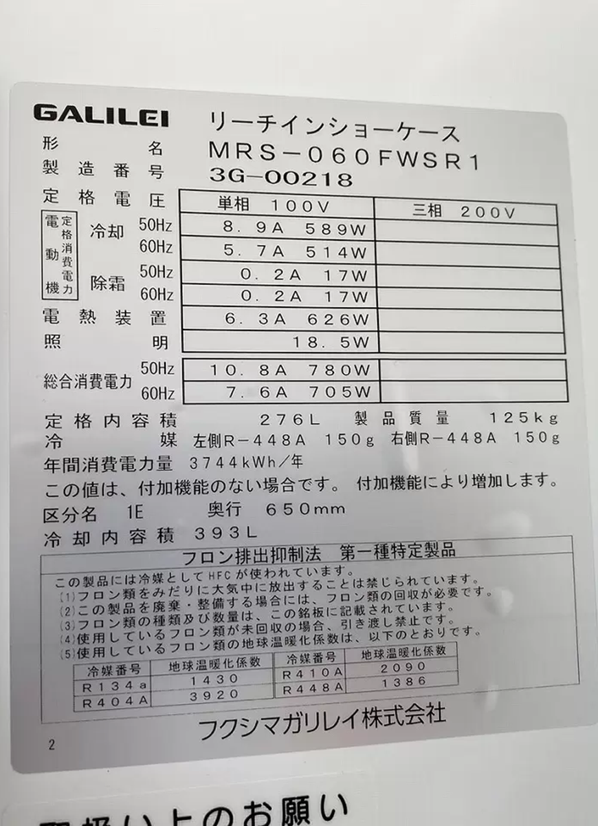 GALILEI冷凍リーチインショーケース