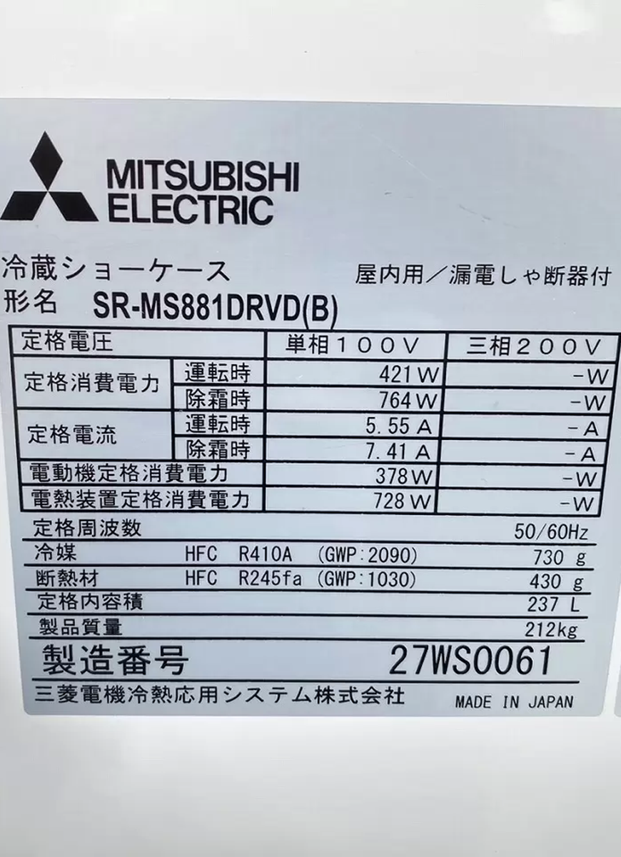 MITSUBISHI平型オープン冷蔵ショーケース